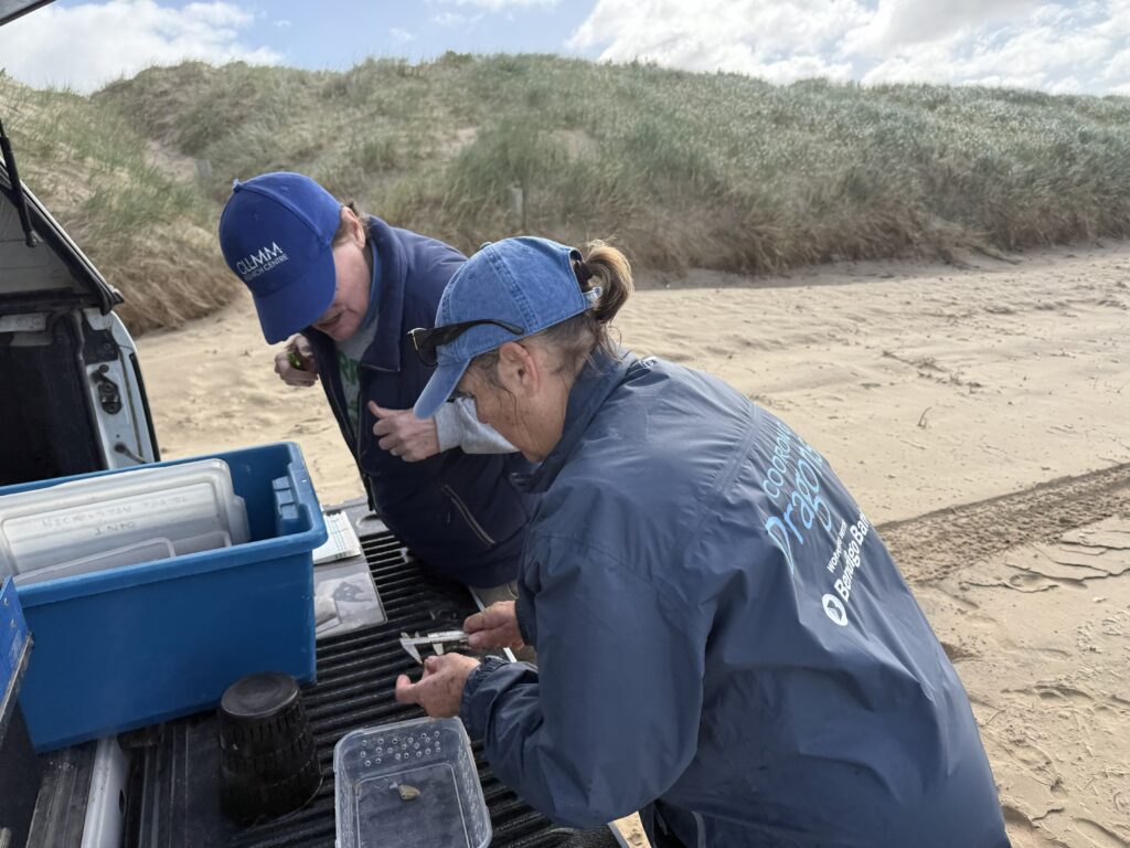 This year, we have enlisted the help of Ngarrindjeri Aboriginal Corporation rangers and community members to complete the surveys. Early data shows that patch catches are restricted to certain areas of the beach and that they contain a limited number of juveniles. The Research Centre will continue surveying the cockle population in 2026 so we can gain insight into how the harmful algal bloom may have impacted cockles on Goolwa Beach.