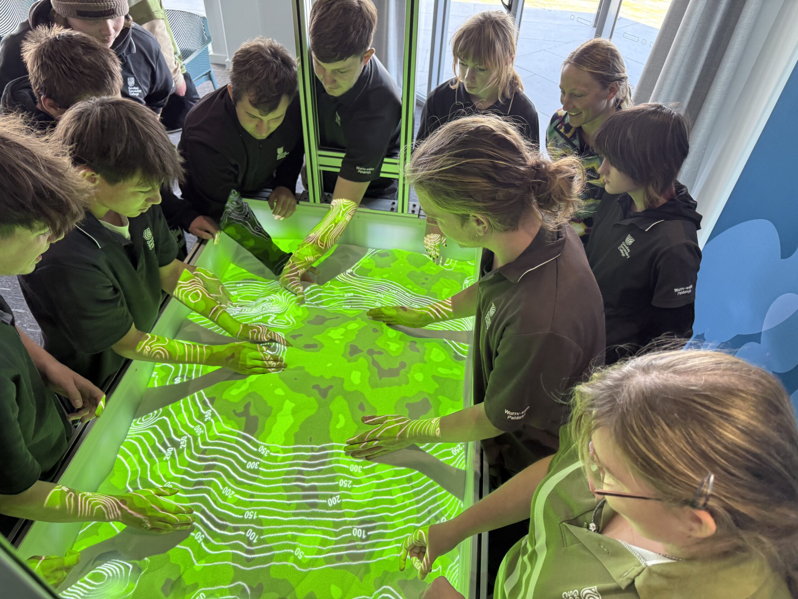 AR sandbox technology is a 3D, interactive and tactile tool that incorporates depth tracking technology to map contour lines (lines of equal elevation) onto the sand that adjust to the elevation levels of the sand in real-time. This technology can create immersive experiences that convey complex concepts about landscape evolution in an engaging and informative manner.